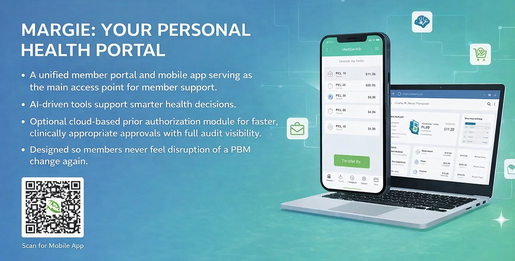 A single member portal and mobile app built as the primary service layer. AI-driven tools support smarter decisions, optional built-in prior authorization reduces friction, and Mark Cuban Cost Plus Drugs is already integrated. Designed so members never feel the disruption of a PBM change again.