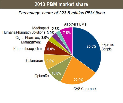 Express Scripts Holding Co. is the largest PBM in the country with about $100 billion in annual revenue. The St. Louis-based company has been notably outspoken about the high sticker prices of new specialty drugs that have hit the market recently, such as the hepatitis C drugs Sovaldi and Harvoni that are manufactured by Gilead Sciences. High-cost drugs have been eating into the profits of PBMs.