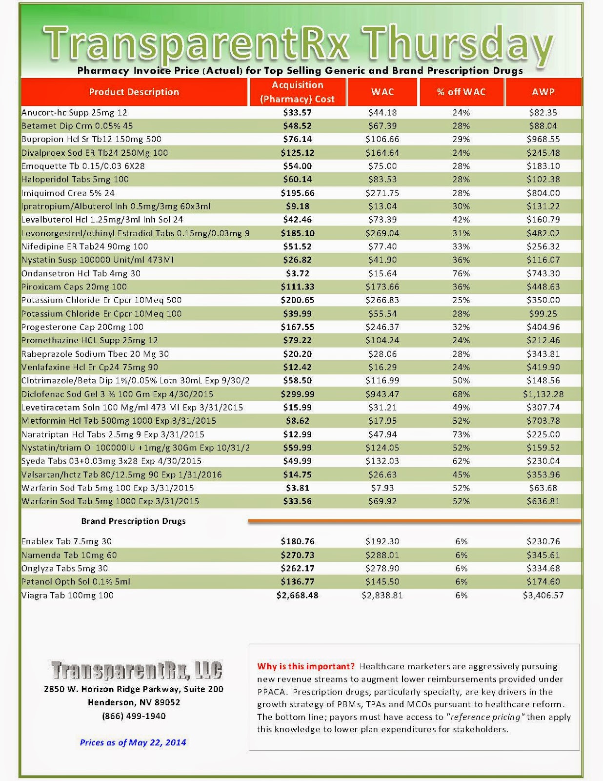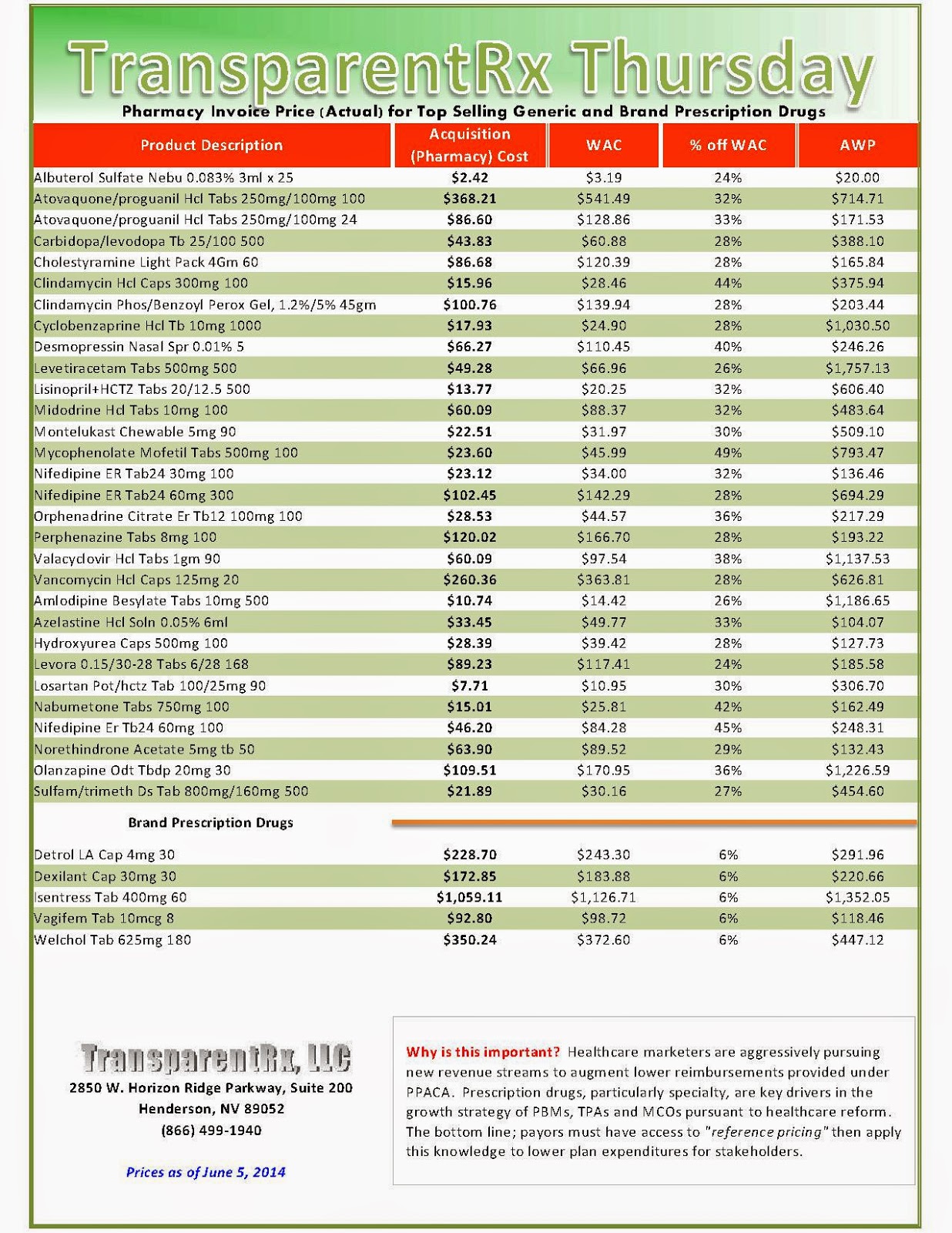 Reference Pricing: Pharmacy Invoice Cost (ACTUAL) for Top Selling Generic and Brand Prescription Drugs