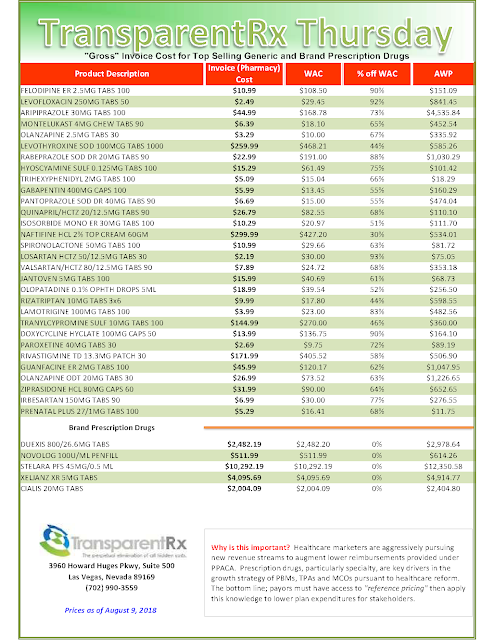1) There are plenty of other opaque discounts to be had. WAC is the list price for wholesalers yet they also receive volume discounts from drugmakers beyond WAC. A lower list price doesn’t necessarily translate into lowest “net” price to the self-insured employer. A PBM could negotiate a big discount yet not pass all of the savings on to the self-insured employer by billing a higher price, for example. In order to determine what the PBM actually pays, demanding radical transparency will be key.