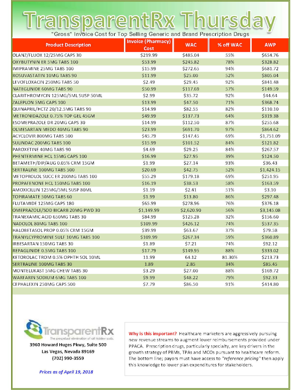 Step #4: Now take it one step further. Check what your organization has paid, for prescription drugs, against our acquisition costs then determine if a problem exists. When there is a 5% or more price differential (paid versus actual cost) we consider this a problem.