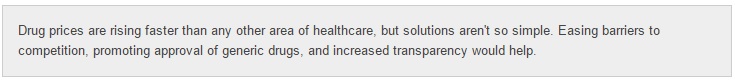 sector, affecting approximately half of all Americans and 90% of seniors who take a prescription drug. Prescription drug spending spiked 12% in 2014 – the largest increase in a decade – helping the United States maintain the dubious distinction of paying the highest costs for drugs in the world. Prescription drug spending in the US was approximately $457 billion in 2015, or almost 17% of overall health spending. Three-quarters of the public thinks drug costs are too high as drug makers continue to raise prices on branded drugs and cost savings in generics slow.