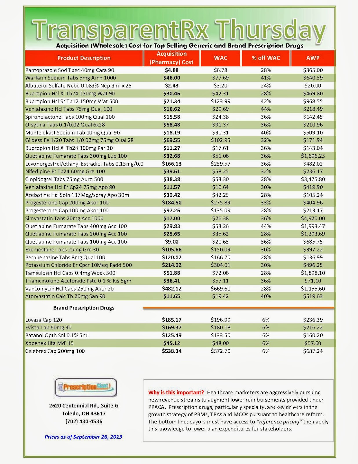 TransparentRx Thursday: Acquisition (Pharmacy) Cost for Top Selling Generic and Brand Prescription Drugs