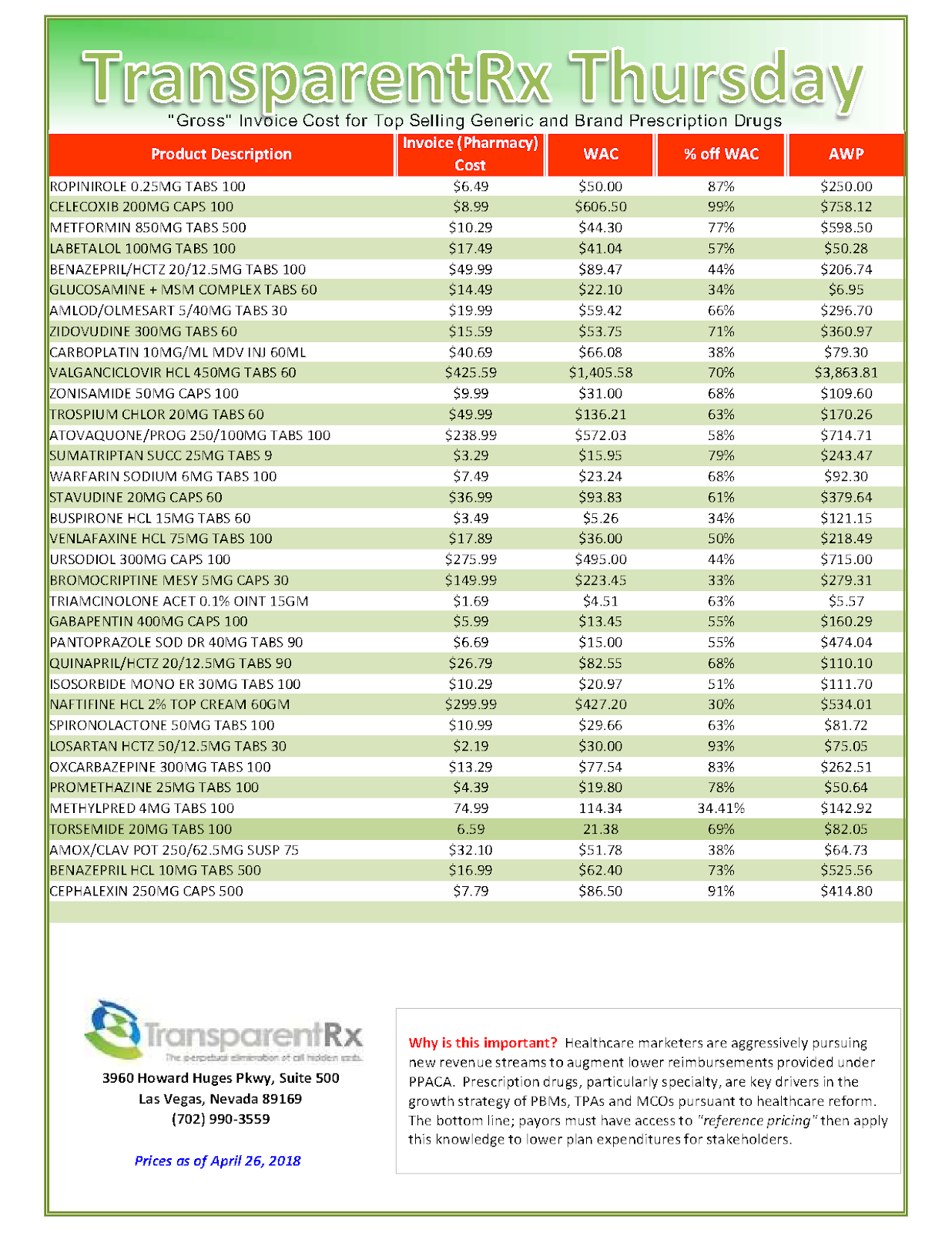 Step #4: Now take it one step further. Check what your organization has paid, for prescription drugs, against our acquisition costs then determine if a problem exists. When there is a 5% or more price differential (paid versus actual cost) we consider this a problem.