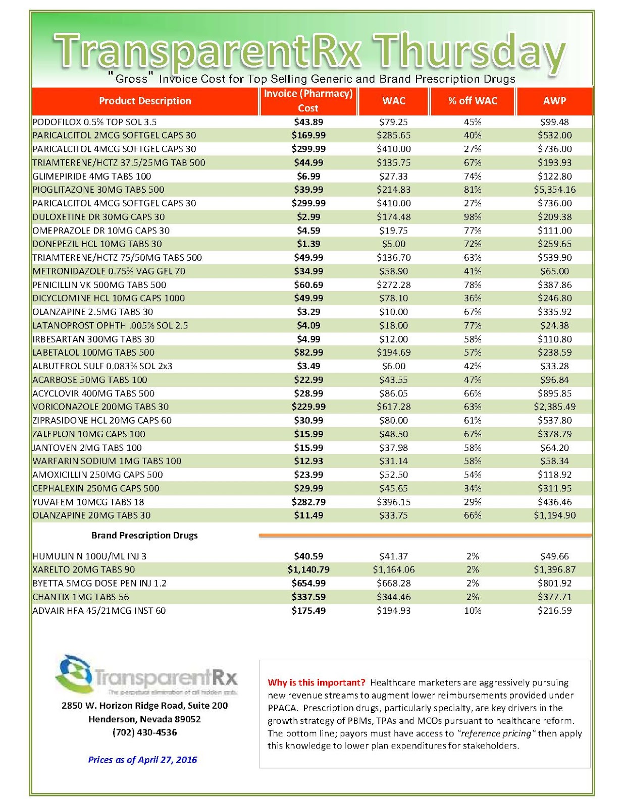 - Aggregate rates negotiated by the PBM with pharmacies for each therapeutic class of drugs.