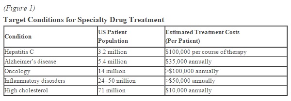 It’s been estimated that by 2020, 9 of the 10 best-selling drugs (by revenue) will be specialty drugs that treat conditions such as those illustrated in Figure 1. The estimates also indicated that specialty drug spending could reach $400 billion, or 9.1% of national health spending.
