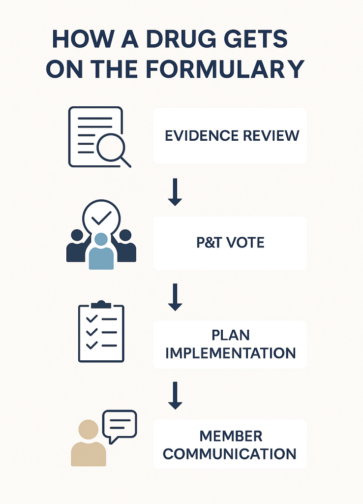 A P&T Committee is an independent panel of clinicians, typically pharmacists, physicians, and sometimes nurses, who evaluate scientific evidence to decide which medications should appear on the formulary. Members are selected based on clinical expertise and independence, not loyalty to a PBM or drug manufacturer.