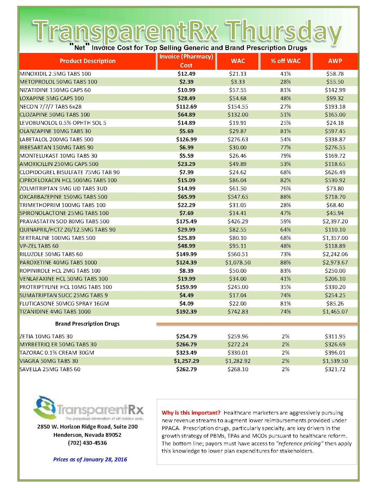 Reference Pricing: “Net” Invoice Cost for Top Selling Generic and Brand Prescription Drugs (Volume 103)
