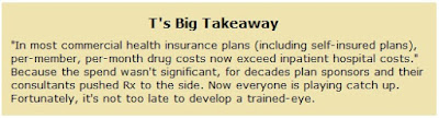 As Lansky of PBGH told me: “Employers aren’t just mad about price gouging but have looked very hard at the pharmaceutical supply chain in order to restructure it — even to the point of talking directly to manufacturers. They want to challenge the very nature of the business: formulary placement, the split between medical benefit and the drug benefit, rebates to pharmacy benefit managers, coupons that insulate consumers from cost sharing, intellectual property and patent rules, etc. They know that beating up on the pharmacy benefit managers (like beating up on the health plans) is not productive; the system needs re-engineering, and no one is motivated to do it except the employers who are paying.”